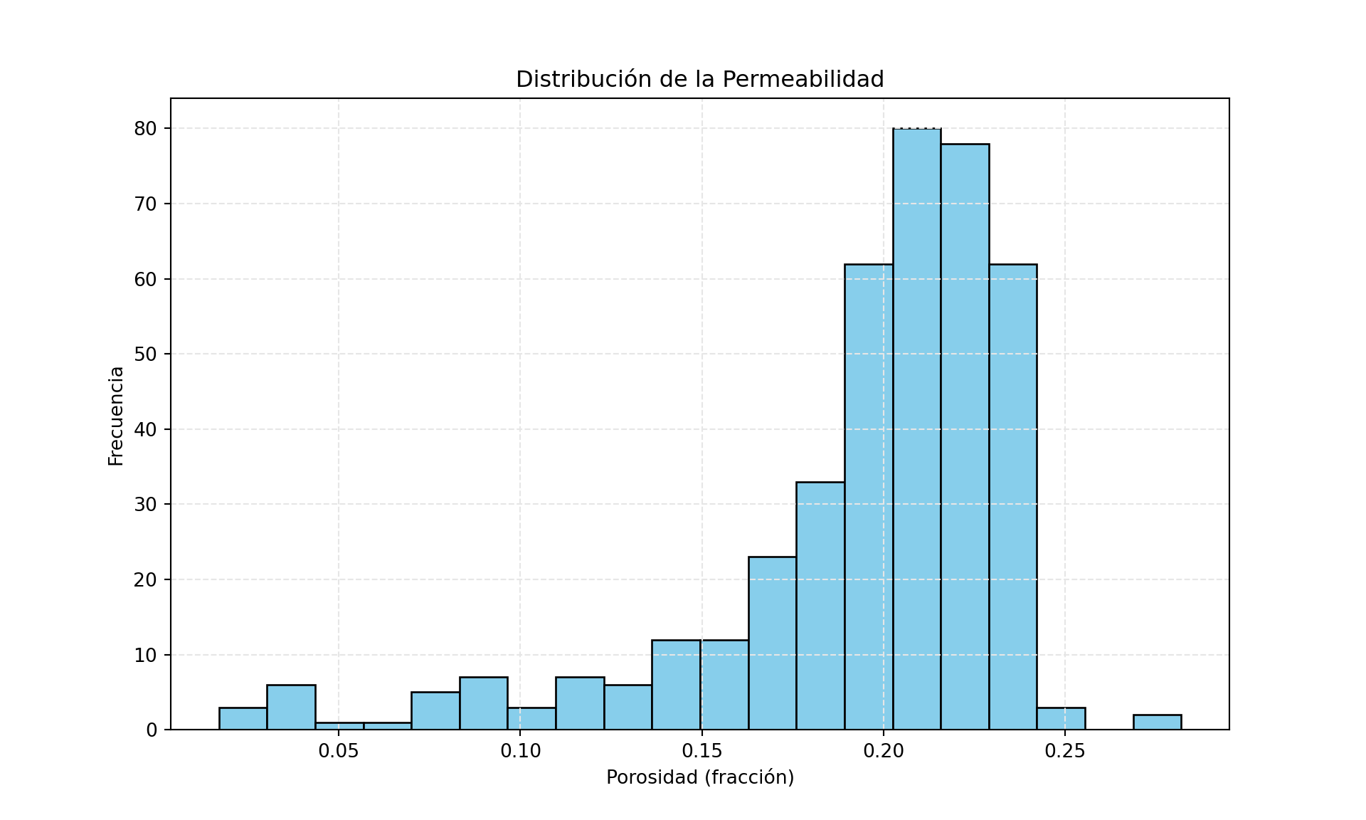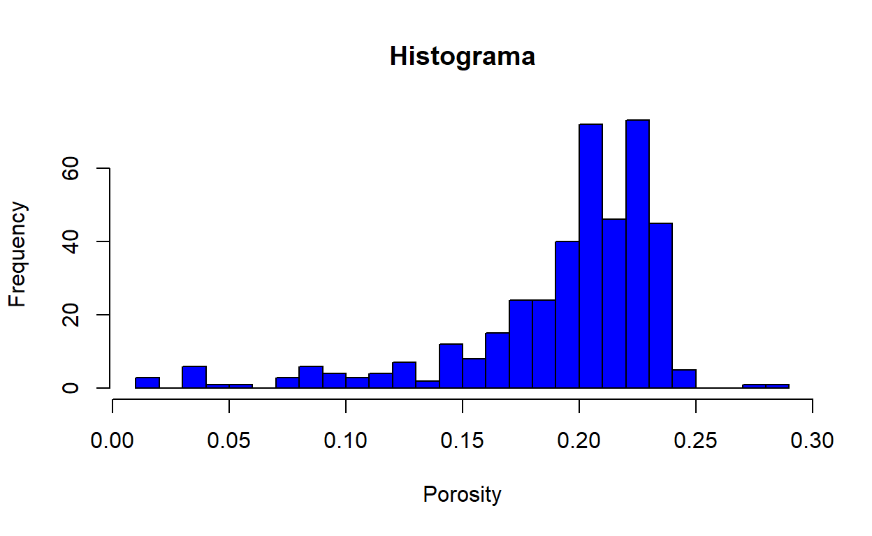 Histograma usando datos de núcleos: porosidad y permeabilidad