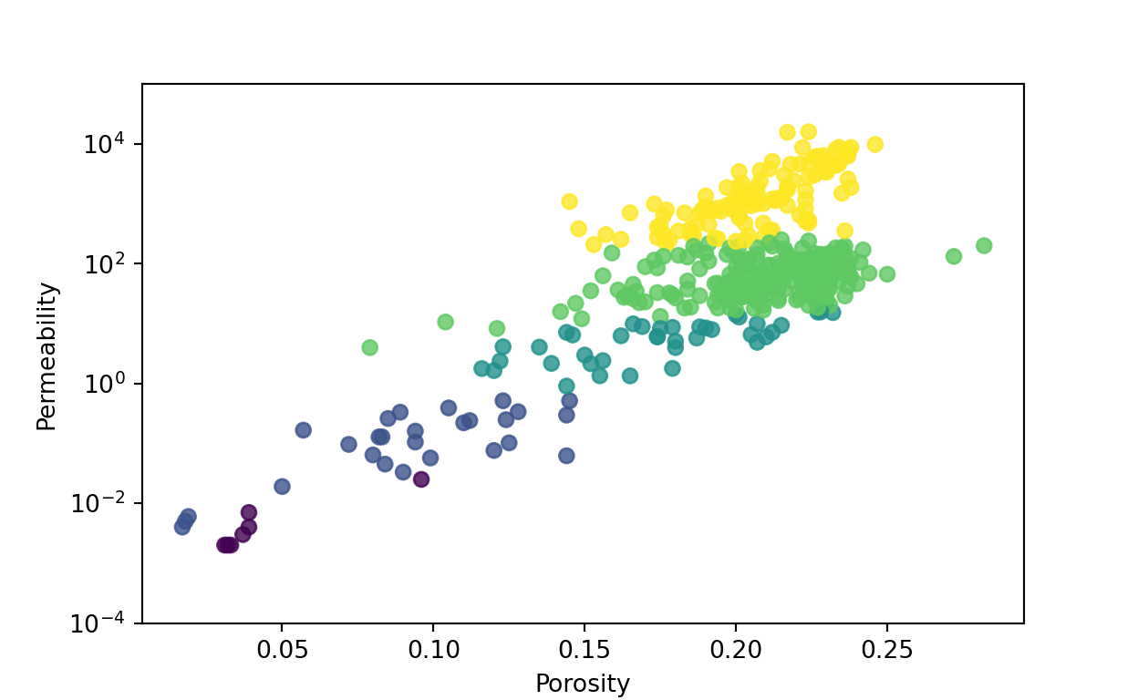 Cálculo de radio de garganta poral para agrupar datos petrofísicos en tipo de roca con Python