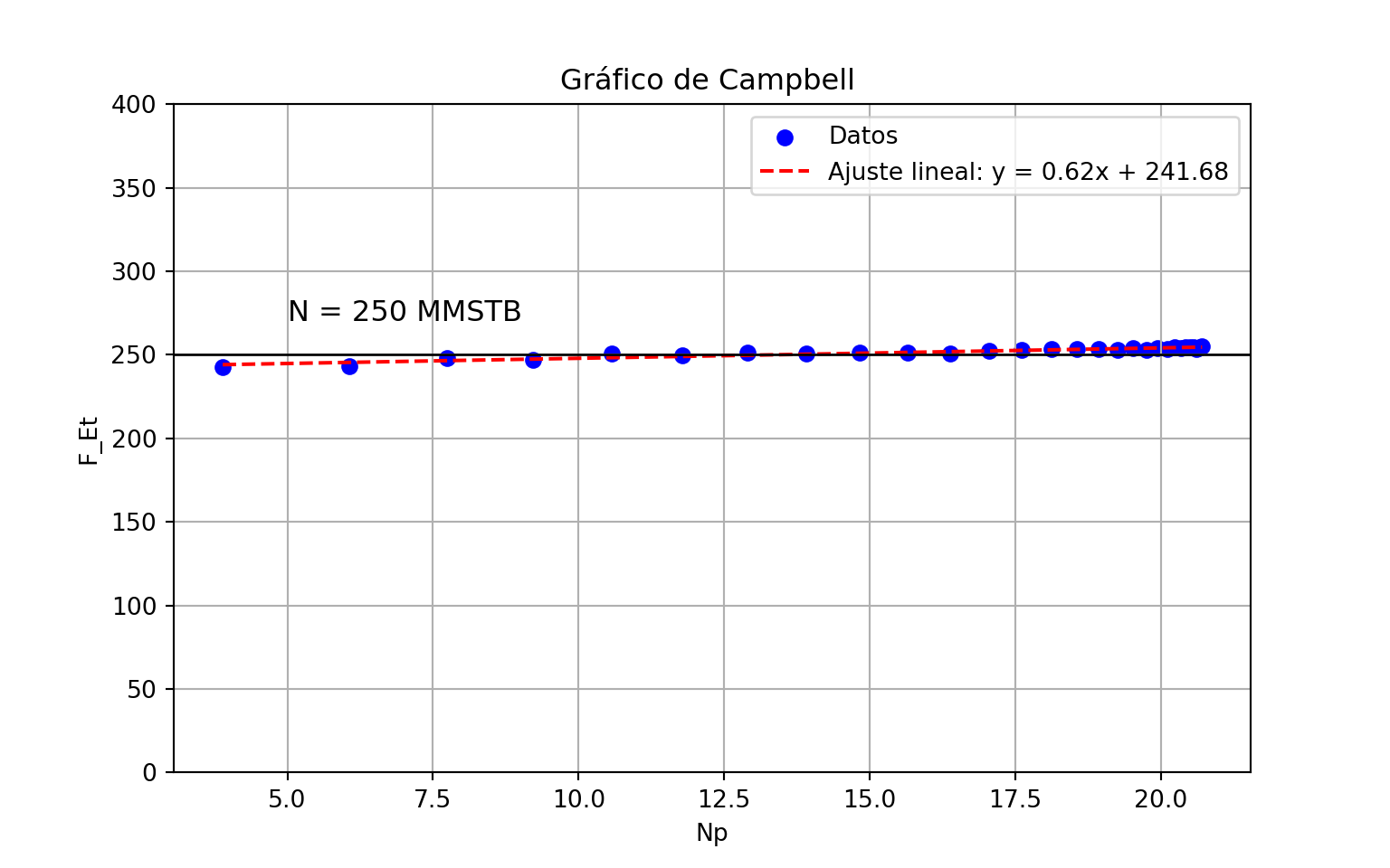 Ejemplo de cálculo usando la ecuación de balance de materia con un modelo sin capa de gas ni acuífero. Método de Diagnóstico de Havlena-Odeh y Gráfico de Campbell