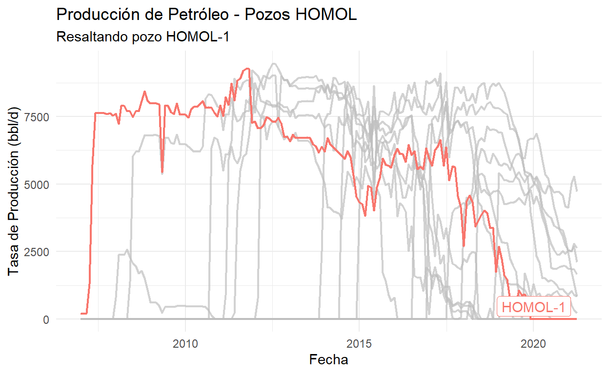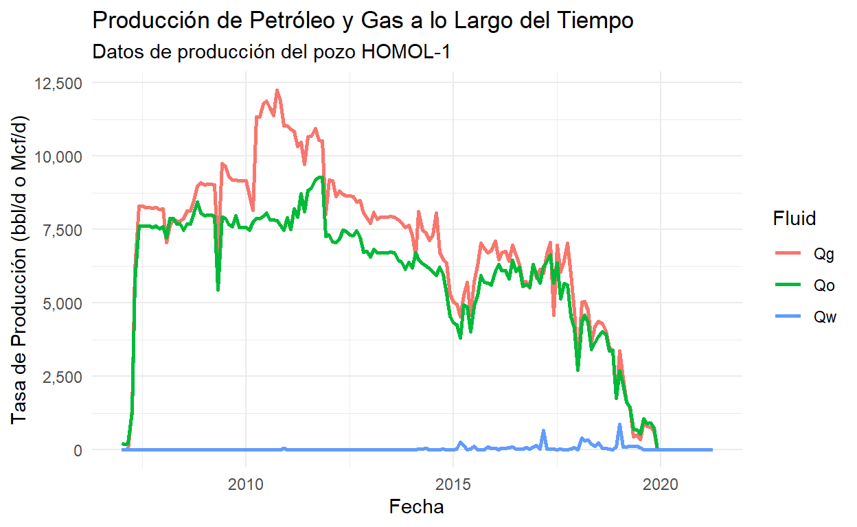 Descubre cómo analizar y visualizar datos de producción petrolera con ggplot2 en R.