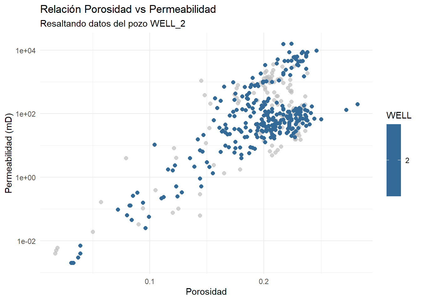 En este ejemplo usaremos datos de núcleos para crear un scatter plot y resaltar el pozo WELL_3.